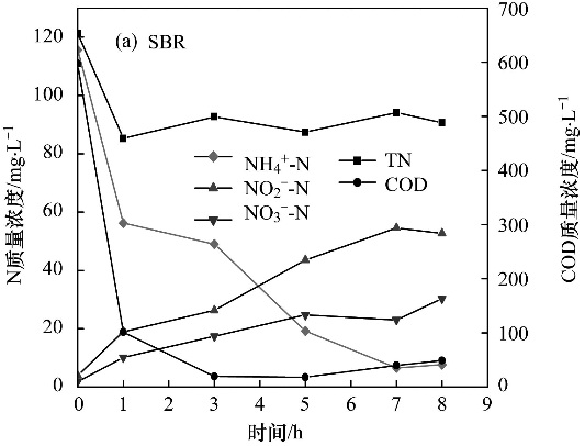 NH4+-N采用納氏試劑分光光度法; NO2--N采用N-(1-萘基)-乙二胺分光光度法; NO3--N采用麝香草酚分光光度法; COD采用快速消解法; pH由pH-2603酸度計測定; MLSS按國家環境保護局發布的標準方法測定.