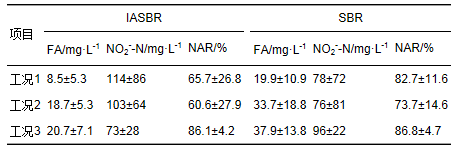 表 2 IASBR和SBR中的FA、 亞硝氮和NAR
