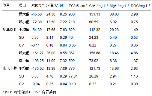表 1 井水理化性質(zhì)指標(biāo)統(tǒng)計(jì)特征