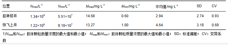 表 2 井水中膠體顆粒濃度的描述性統(tǒng)計(jì)