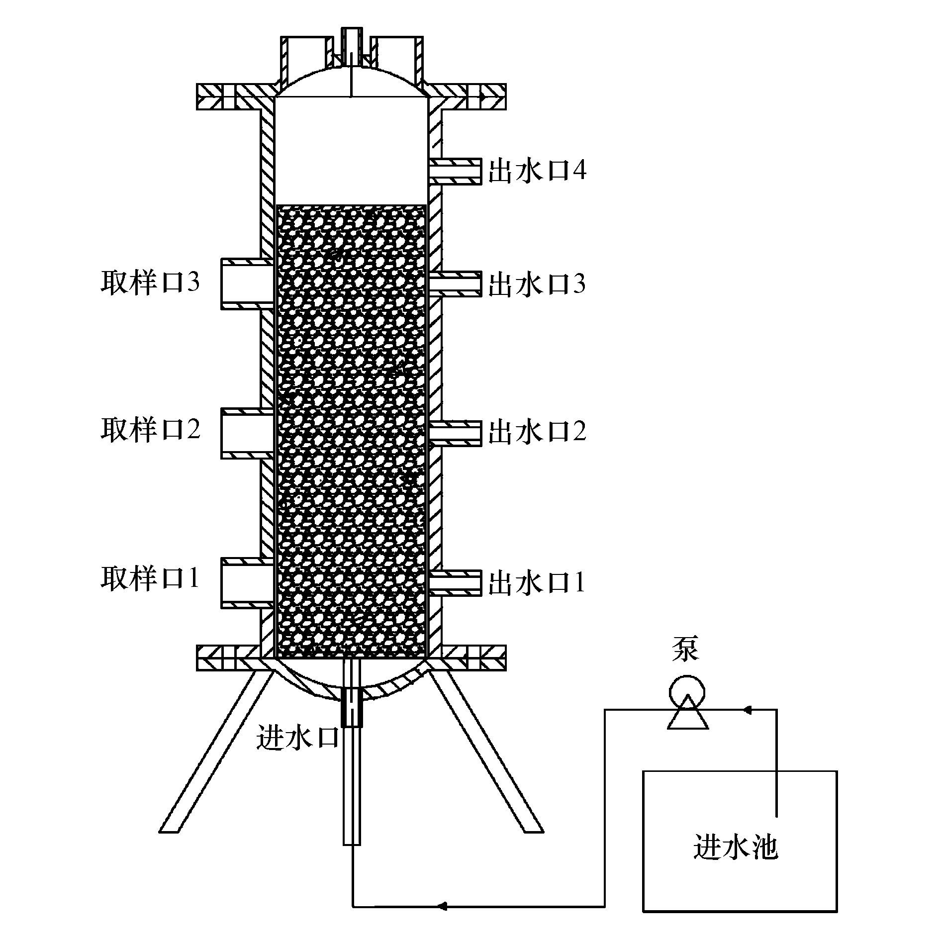 本實驗所用硫自養(yǎng)ClO4-還原反應(yīng)器為升流式固定床反應(yīng)器,圖 1為實驗裝置. 反應(yīng)器內(nèi)徑為10 cm,有效高度為45 cm,材質(zhì)為有機(jī)玻璃. 反應(yīng)器內(nèi)填充載體為硫單質(zhì)和石英砂(V硫:V砂=2:1),裝填體積為3.6 L. 硫顆粒和石英砂粒徑均為2~3 mm,反應(yīng)器內(nèi)孔隙率為0.4,反應(yīng)器有4個不同高度的出水口,分別為出水口1(60 mm),出水口2(180 mm),出水口3(300 mm),出水口4(390 mm),菌群結(jié)構(gòu)分析所取泥樣分別來自取樣口1(60 mm)和取樣口3(300 mm).