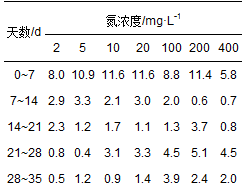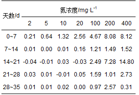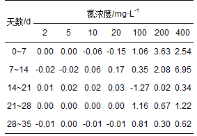 表 7 粉綠狐尾藻對不同氮濃度污水氨氮的去除速率/mg·(L·d)-1