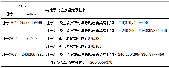 表 2 3種熒光組分的光譜特性及其物質鑒定