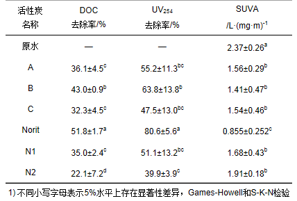 表 3 不同活性炭對東江水溶解性有機物去除效果
