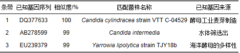 表 1 系統中外源性酵母16S rRNA基因序列比對結果