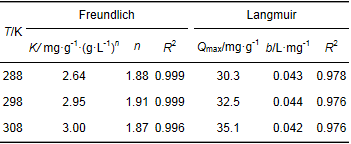 表 1 Ti-Zr-D201吸附磷的Freundlich和Langmuir模型擬合參數