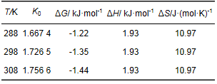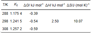 吸附過程熵變ΔS和吸附焓變ΔH由Van't Hoff方程計算: