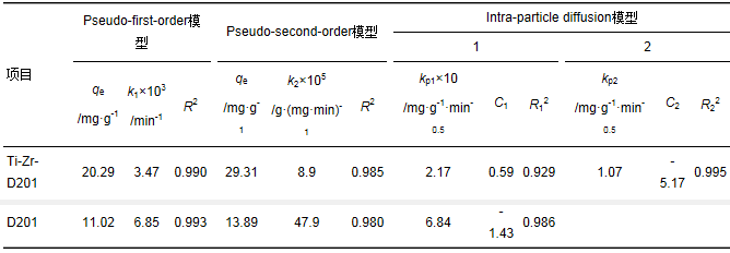 表 5 Ti-Zr-D201吸附磷動力力學擬合參數