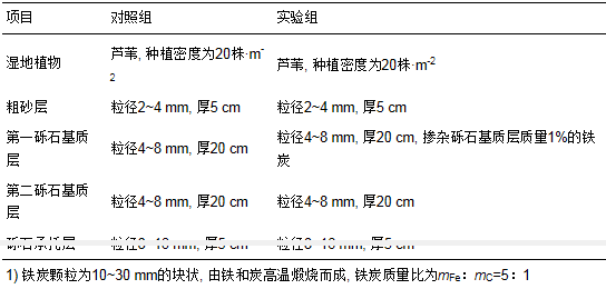 鐵炭內電解法作為目前國內外研究較為成熟的電化學工藝, 已經在制藥廢水、印染廢水、焦化廢水等難降解廢水的處理上得到了廣泛應用.鐵炭內電解與其他生化處理工藝相結合, 可以改善廢水性質、提高廢水可生化性、提高廢水的處理效果.為此, 本研究構建新型鐵炭內電解強化脫氮人工濕地(vertical flow constructed wetland associated with iron-carbon internal electrolysis, ICIE-VFCW), 通過在濕地基質中摻雜鐵炭, 形成鐵炭內電解與人工濕地耦合工藝, 利用鐵炭內電解改善尾水可生化性, 為濕地微生物提供更多可利用碳源以強化濕地對氮素等污染物的去除, 并采用紫外-可見光光譜(UV-VIS)、凝膠過濾色譜(GFC)等深入分析鐵炭內電解人工濕地的強化脫氮機制.本研究通過開發一種高效脫氮的人工濕地處理工藝, 以期為人工濕地的進一步推廣應用提供技術支持.