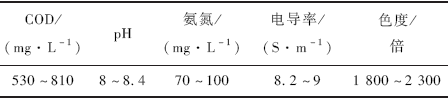采用某染料廢水一級好氧生化出水為實驗原水,該染料廠主要生產各類高檔高質染料,產品多用于紡織品、紙張和皮革染色使用。廢水中含大量帶苯環的有機物,很難進行生物降解,由于不同產品對應的生產廢水不同,所以實驗原水水質波動較大,實驗期間,原水各指標見表1。