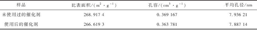 對使用前后的催化劑進行比表面積測定,BET測試結果見表6。