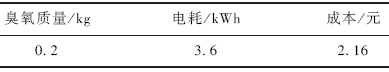 工業用臭氧發生器按照供氣氣源可分為空氣型和氧氣型2 類,由中華人民共和國城鎮建設行業標準可知空氣源臭氧發生器的電耗應低于18 kWh·kg - 1 。按每度電0. 60 元,臭氧投加量為200 mg·L - 1 ,由于實驗期間催化劑無流失和失活情況出現,暫時不考慮催化劑的成本,以最高電耗來計算處理1 m3 廢水所需的臭氧成本,具體見表8。