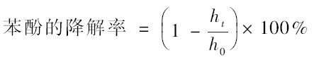 式中:ht 表示t 時刻高效液相色譜苯酚的峰高;h0 表示初始高效液相色譜中苯酚的峰高。