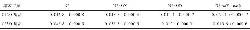 2. 2 ubiX 和ubiD 基因對N2 菌中開環(huán)裂解酶活性的影響作用