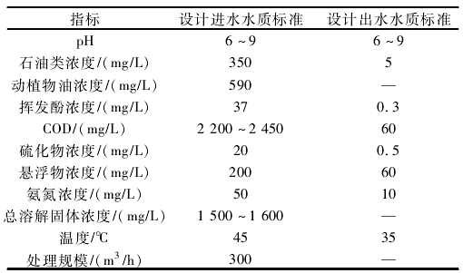 煉油廠各生產(chǎn)裝置排放的含油、含鹽污水經(jīng)收集排放至污水處理廠混合后集中處理,污水處理廠設(shè)計(jì)進(jìn)出水水質(zhì)標(biāo)準(zhǔn)見表1。