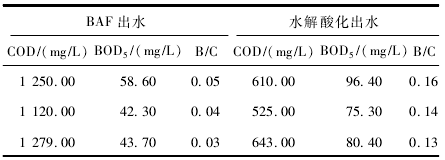 BAF和水解酸化出水 COD、BOD5檢測(cè)結(jié)果見表 2。