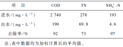 由上述實驗結果分析可知,UDNSB 反應器和生物接觸氧化池在HRT 分別為22 h、57 h,容積負荷分別為0. 30 kgTN·(m3 ·d) - 1 、0. 11 kgNH4+ -N·(m3 ·d) - 1 的條件下,對制革廢水厭氧預處理出水具有良好的脫氮效果,其出水TN、NH4+ -N 的去除率分別保持在73% 、97% 以上,這說明由UDNSB 反應器和生物接觸氧化池構成的生物脫氮系統對制革廢水脫氮效果顯著,具有明顯的TN、NH4+ -N 的去除優勢。