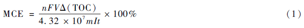 礦化電流效率(mineralization current efficiency,MCE)是體現電化學反應的過程中有效礦化化學反應的參數,實驗中以一定時間內的TOC 去除作為反應過程中的有效反應,計算公式如下:
