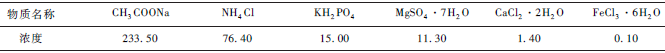 2014 年11 月上旬,從四川省阿壩州馬爾康市的市政下水道、河流湖泊中采樣,當時的采樣溫度為5 ℃左右。隨后,將采集來的污泥用于耐冷微生物的篩選與馴化,微生物生長的培養基采用LB 培養基,后期培養活性污泥的污泥來源是成都市龍泉驛區的平安污水處理廠。實驗用的人工污水配方如表1 和表2所示。