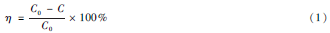 式中:C0 、C 為溶液初始濃度和平衡濃度,g·L - 1 ;V 為處理溶液體積,L;F 為法拉第常數,為96 485 C·mol - 1 ;m 為摩爾質量,g·mol - 1 ;I 為流經電極的電流,A。
