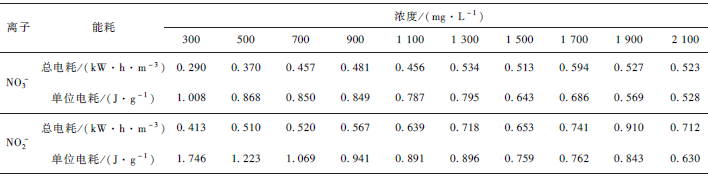 表1 裝置去除NO2 - 和NO3 - 能耗對比