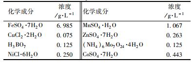 人工配置的模擬高鹽廢水用于本次實驗, 通過進水中逐漸增加的鹽度對EGSB反應器進行馴化.人工配水主要由葡萄糖、NH4Cl、KH2PO4、NaHCO3、NaCl和營養液配制而成, 葡萄糖、NH4Cl、KH2PO4分別作為人工配水中微生物生長代謝所必須的C、N、P源, 三者的投加量比例為C:N:P=250:5:1, 后期調整為125:5:1.采用NaCl提供人工配水中的鹽度, 對微生物進行鹽度馴化, 其投加量逐漸由0增加到7500 mg ·L-1.營養液中包含微生物生長所需要的微量元素, 其組成成分詳見表 1.