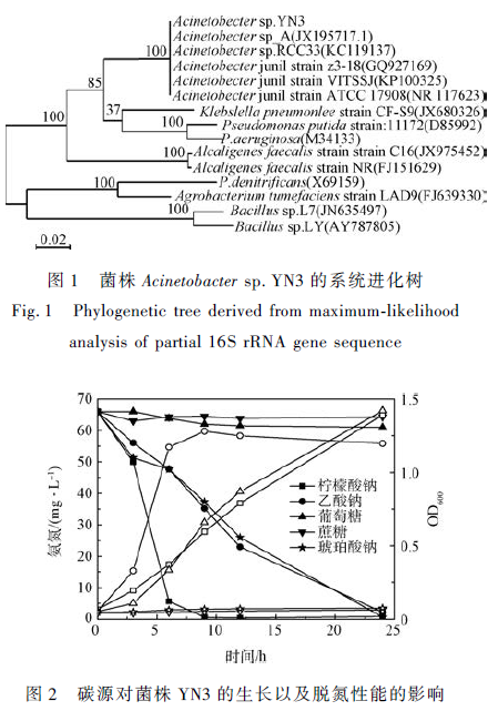 2. 2. 1 碳源對菌株YN3 脫氮性能的影響