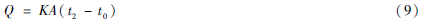 式中:K為總傳熱系數(kJ · ( m2 · h ·℃)-1);A為蒸發塔散熱表面積(m2) 。