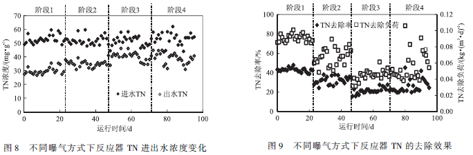 2. 4不同曝氣方式下TN的去除性能