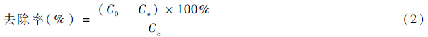 式中:C。為溶液中磷的初始濃度(mg / L ) ;Ce為吸附后(或吸附平衡時)水樣的含磷濃度(mg / L)