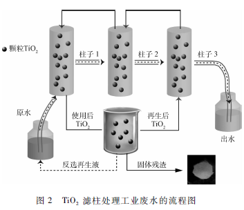 3)顆粒TiO2吸附劑對工業廢水中的多種共存重金屬均具有吸附效果,并最終以固體殘渣的形式排出