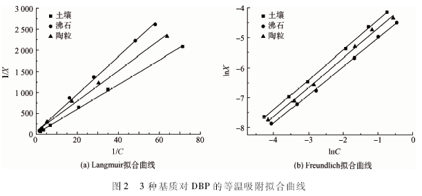 表1 3 種基質對DBP的等溫吸附方程和相關參數
