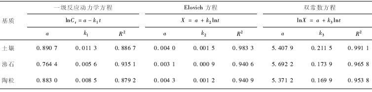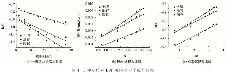 表2 3 種基質對DBP的吸附動力學方程和相關參數