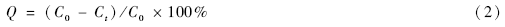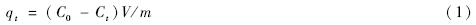 式中:C。為溶液中Pb2+初始濃度,mg / L;Ct 為某一時刻溶液中Pb2+濃度,mg / L ;m為溶液中吸附劑投加量,g;V為溶液體積,L。