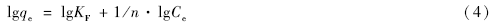 式中:R為常數(shù)8. 314 J · ( mol · K)-1;T為絕對溫度;K為某一溫度下的平衡常數(shù)(K = qe / Ge ) 。