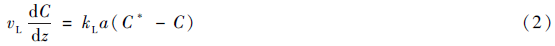 式中: vL 為液相流速, C 為產(chǎn)水的臭氧濃度, C∗ 為液相飽和臭氧濃度, a 為膜的比表面積, z 為膜長(zhǎng)。