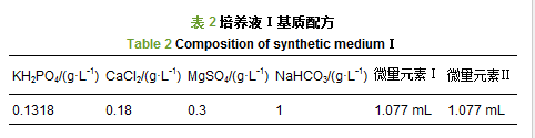培養液Ⅰ和培養液Ⅱ基質配方如表 2和表 3所示,調節培養液ⅠpH為7.0±0.5水平,培養液ⅡpH為8.0±0.5水平.