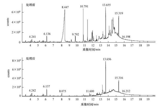 圖 2 菌群處理前后污染物GC-MS總離子流圖比較