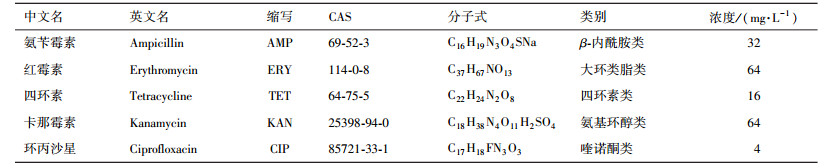 首先, 依據《臨床和實驗室標準協會》(Clinical And Laboratory Standards Institute, CLSI)中抗生素對細菌的最小抑制濃度確定目標抗生素濃度, 具體如表 3所示.