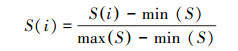 式中, S(i)為數據集中的一組數據;min(S)為數據集中值最小的一組數據;max(S)為數據集中值最大的一組數據;