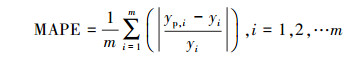 以上各式中,y為實際值,y*為實際值均值,yp為預測值,yp*為實際值均值,m為樣本數量.