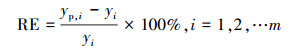 (4) 相對誤差(Relative Error,RE),RE表示絕對誤差值與被測量值的真值之比,相對誤差更能反映預測的可靠程度;