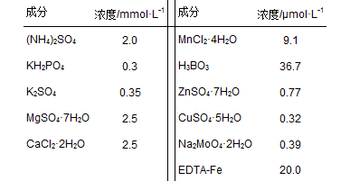 表 1 Hoagland營養(yǎng)液的配方及成分