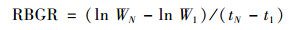 式中, W0、W1和WN分別指起始、第1 d和第N d采樣時(shí)測定的生物量(g), SH0、SH1和SHN分別指起始、第1 d和第N d采樣時(shí)測定的莖高(cm), t1和tN分別指第1 d和第N d采樣的天數(shù)(d).