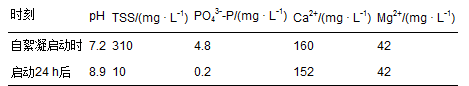 這些實驗結果充分證明,在微藻生長的正常pH范圍內(8~10),磷酸鈣是誘導自絮凝的關鍵沉淀物. 更具工程意義的是,Sukenik和Shelef(1984)發現自絮凝的臨界pH值(絮凝效果達50%的pH)將隨PO43-(表 5)和Ca2+(未顯示)濃度的上升而下降; 在含高濃度Ca2+和PO43- 的培養液中,微藻自絮凝甚至可以在中性條件下就發生. 這說明當以含磷較高的市政污水為底物時,可相對較容易地在微藻生長的正常pH值范圍內,通過生成磷酸鈣沉淀同步實現自發性絮凝和高效除磷.