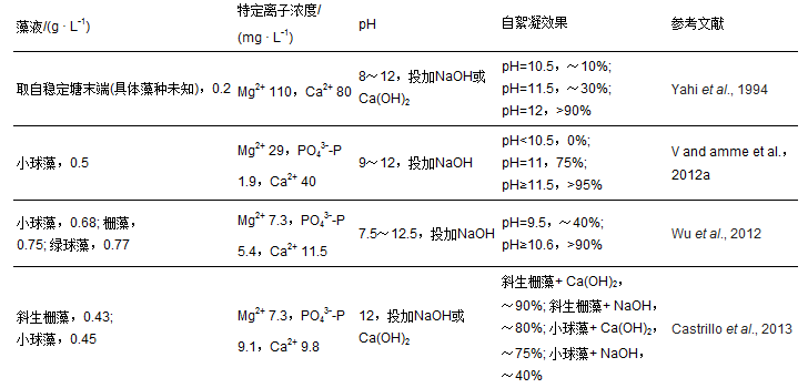 然而,除少數學者繼續證實磷酸鈣在誘導微藻自絮凝中的核心作用外,大部分研究都顯示氫氧化鎂才是誘導自絮凝的關鍵沉淀物,代表性研究如下: