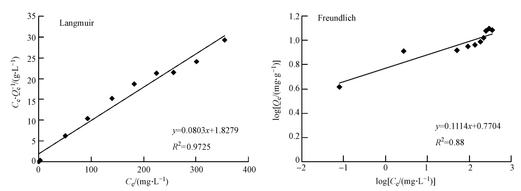圖 6 Langmuir和Freundlich吸附等溫線