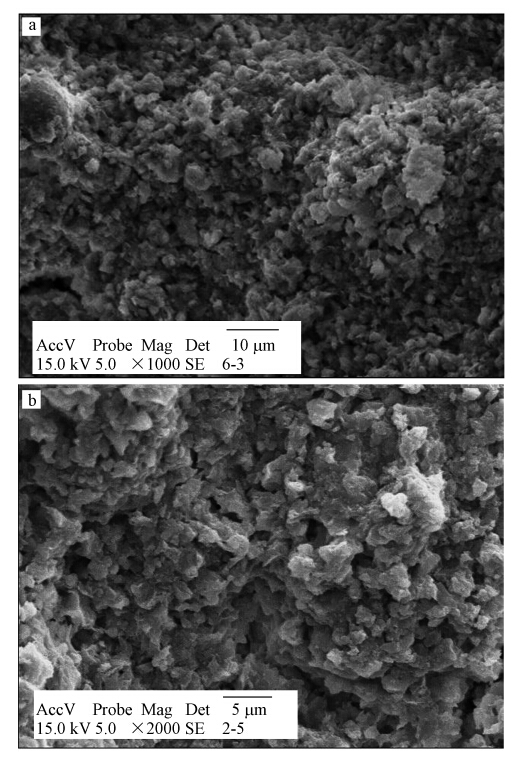 圖 9 吸附劑顆粒的SEM圖像(a.1000×;b.2000×)