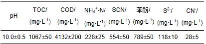 表 1 廣東韶鋼焦化廢水原水的主要水質指標