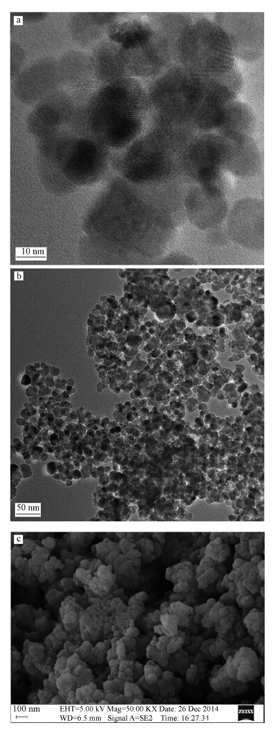 圖 2 催化劑的形貌表征(a,b為TEM,c為SEM)